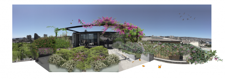 Ubicado en una terraza del cerro Esperanza, Valparaíso, se proyecta un jardín en maceteros de diversos tamaños.